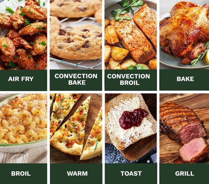 VERSATILE COOKING FUNCTIONS: This premium 1800-watt Air Fryer Toaster Oven is equipped with an air fry setting plus toast, convection bake, bake, convection broil, broil, grill, and warming feature